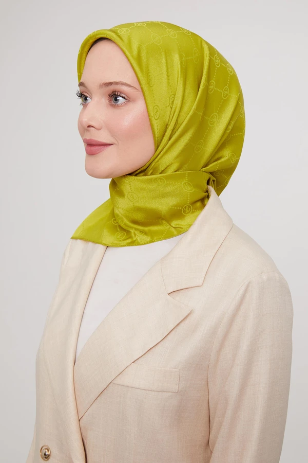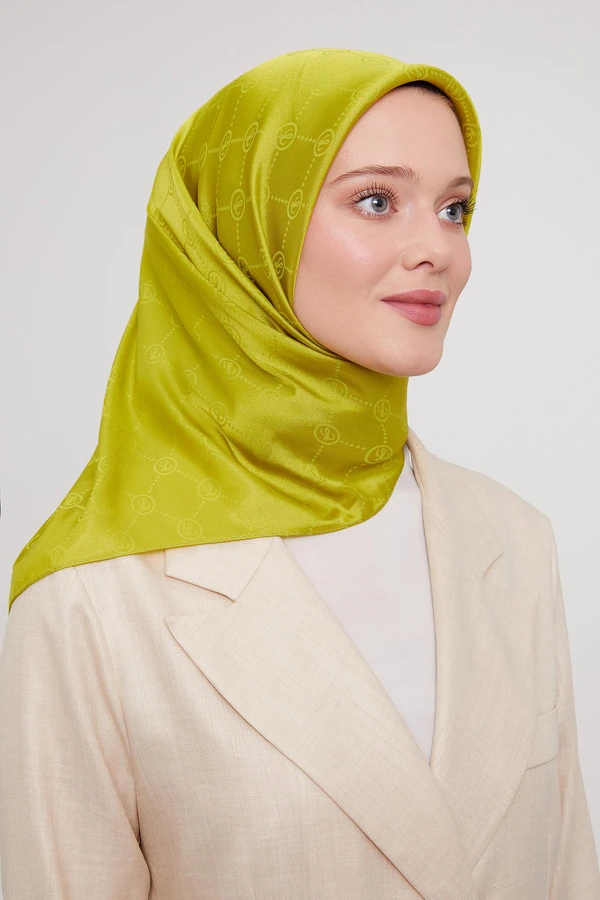 Yağ Yeşili L Baskılı Kristal Jakarlı Eşarp